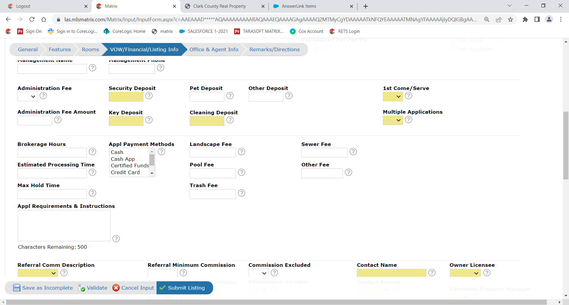 When entering the Rental Listing, you will see the following under the VOW/Financial/Listing Info Tab.